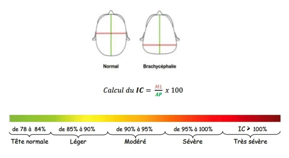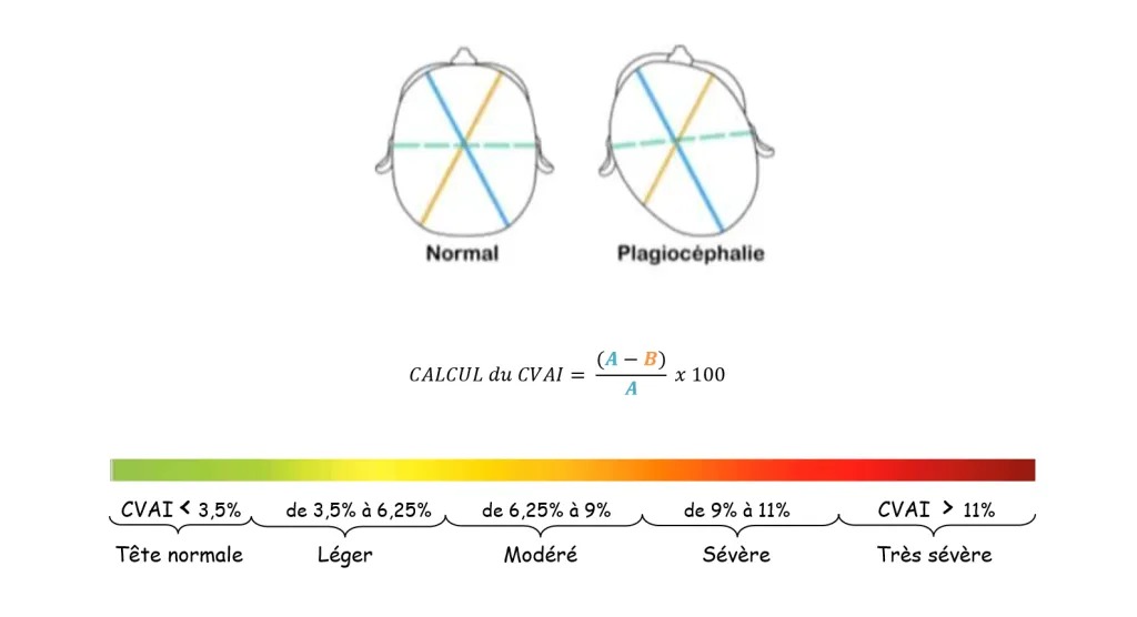Le CVAI est le score d’asymétrie crânienne divisé par la plus grande des deux diagonales mesurées.