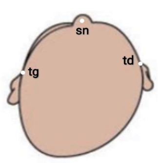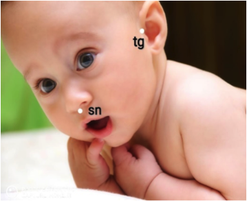 sn = subnasal ; t = tragion (insertion supérieure du tragus) ; tg = tragion gauche ; td = tragion droit